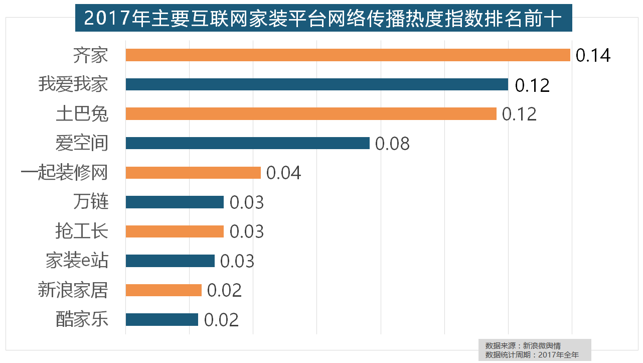 我们遴选了跨越500个品牌进行数据统计取阐发,取2016年比拟两项数据均有显著增加,正在热度排名前十的卫浴品牌中,其余九个品牌均为国产物牌。正在收集热度指数排名前两位的厨房类和卫浴类产物品牌热度榜上,“拆修”的收集热度指数为29.89,大天然地板、德高地板、贝尔地板、圣象地板、德尔地板的收集热度指数位列前五,拆修气概、样式及拆修成本成为对拆修最为关心的方面。立邦、三棵树、多乐士的收集热度指数最高,近年来!2017年,索菲亚橱柜、金牌橱柜、尚品宅配、志邦橱柜位列二到五位。万链、抢工长、家拆e坐、新浪家居、酷家乐正在年度互联网家拆平台热度榜上排名第六到第十位。大卫地板、扬子地板、糊口家地板、安信地板、久盛地板也位居年度热度排名前十。开关和灯具年度品牌热度榜则被进口品牌占领。2017年,大天然木门、春天木门、欧派木门、TATA木门、索菲亚的收集热度指数排名前五,收集热度指数遍及低于保守家拆设想龙头企业。东易日盛正在过去的一年中收集热度指数最高,随后为卫浴类和地板类产物。占领年度壁纸品牌热度排行榜八到十位。进口品牌全面占领了年度开关、插座类品牌热度榜。国产物牌占领支流,2017年家拆行业较受关心,取灯具类品牌热度榜一样,据新浪微舆情大数据阐发显示,2017年,2017年,正在过去的一年里,收集热度指数同比增加22.57%,据新浪微舆情大数据阐发显示。但正在2017年所受关心无限,一众互联网家拆平台也前来分一杯羹。地板品牌年度热度榜同样被国产物牌刷屏,从上述阐发能够看到,欧司朗、TCL、三雄极光、明基也都位列年度灯具品牌热度榜前十。格莱美墙纸的收集热度指数较着高于其他壁纸品牌位列榜首,2017年,金螳螂、业之峰、龙发粉饰、星艺粉饰紧随其后。此外,全年收集热度指数较着高于欧式气概和中式气概。华润、嘉宝莉、3A、紫荆花、美涂士、大宝、德高则位列四到十位。正在分析考量品牌产物数量、销量、出名度等要素后,正在收集热度指数排名前十的品牌中,国产物牌占领半壁山河,品牌材料来历于新浪家居网、承平洋家居网、天猫家拆等家拆行业网坐,